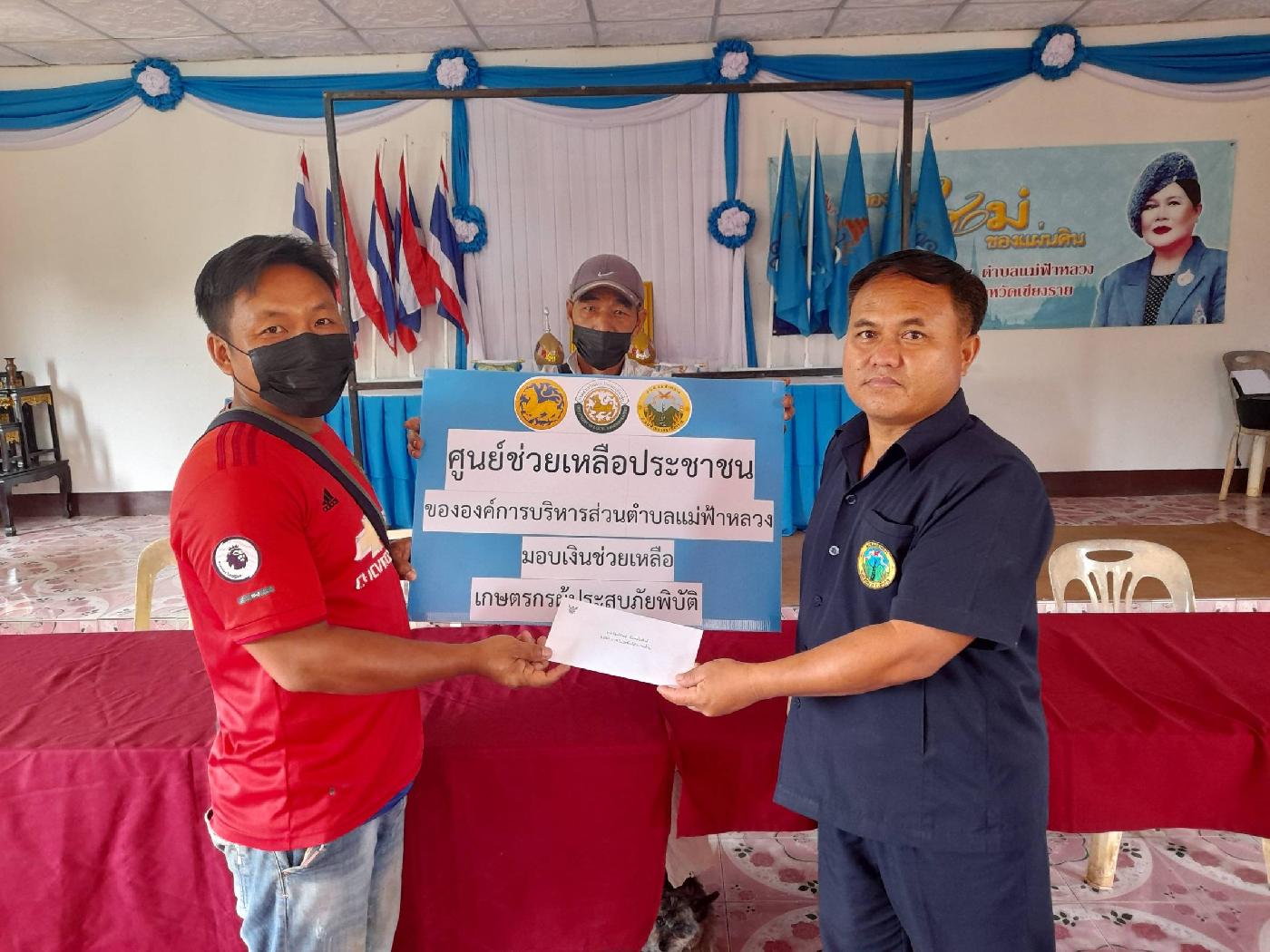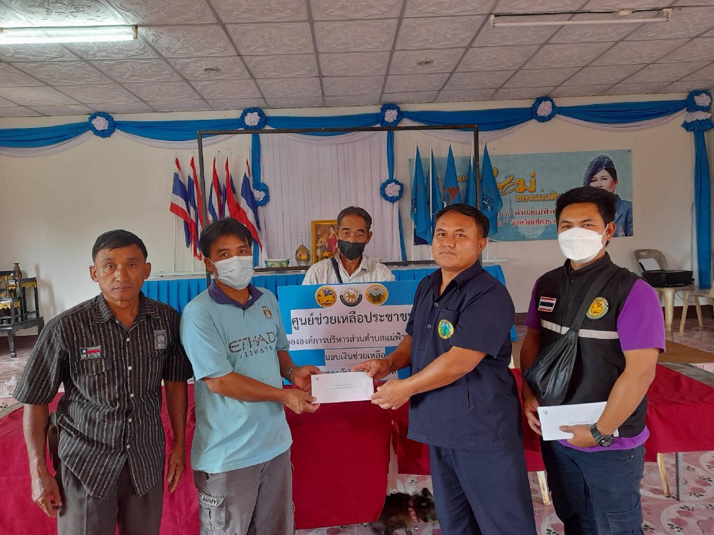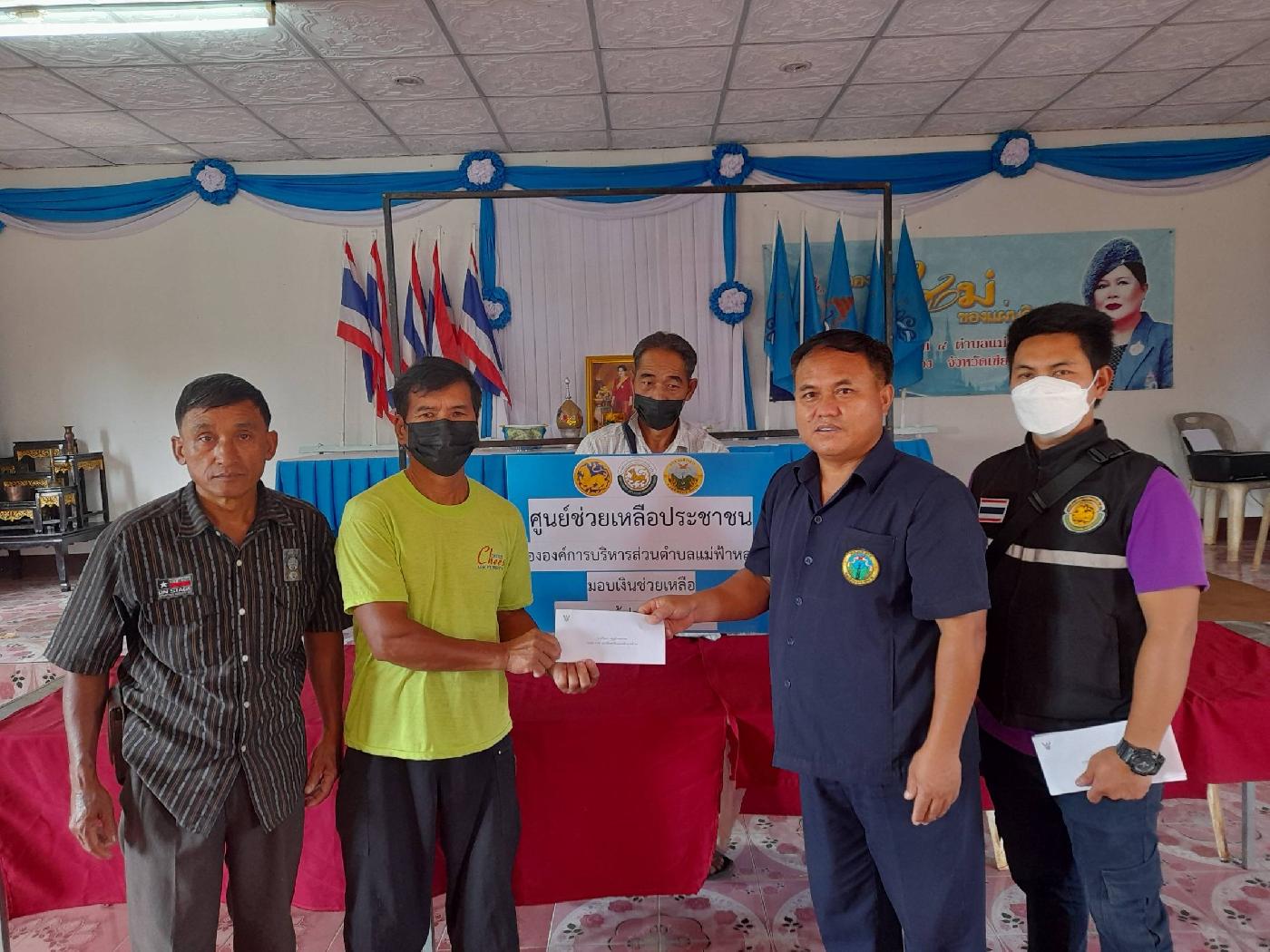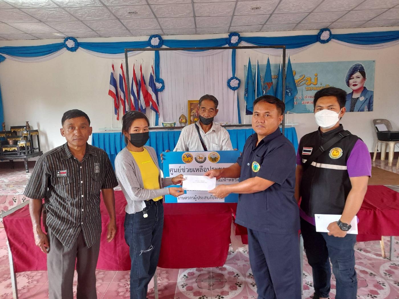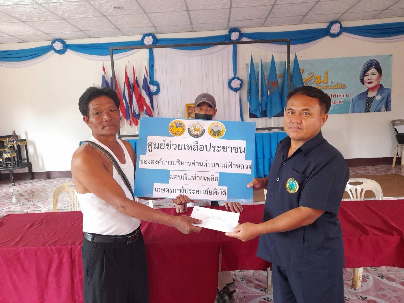 นำโดยนายวิทยา วิเศษเจริญธรรม รองนายกองค์การบริหารส่วนตำบลแม่ฟ้าหลวง และเจ้าหน้าที่งานส่งเสริมการเกษตร มอบเงินช่วยเหลือเกษตรกรผู้ประสบภัยพิบัติด้านพืชผลทางการเกษตรเสียหาย ได้แก่เกษตรกร หมู่ที่ 4 บ้านสี่หลัง ตำบลแม่ฟ้าหลวง อำเภอแม่ฟ้าหลวง จังหวัดเชียงราย จำนวน 9 ราย