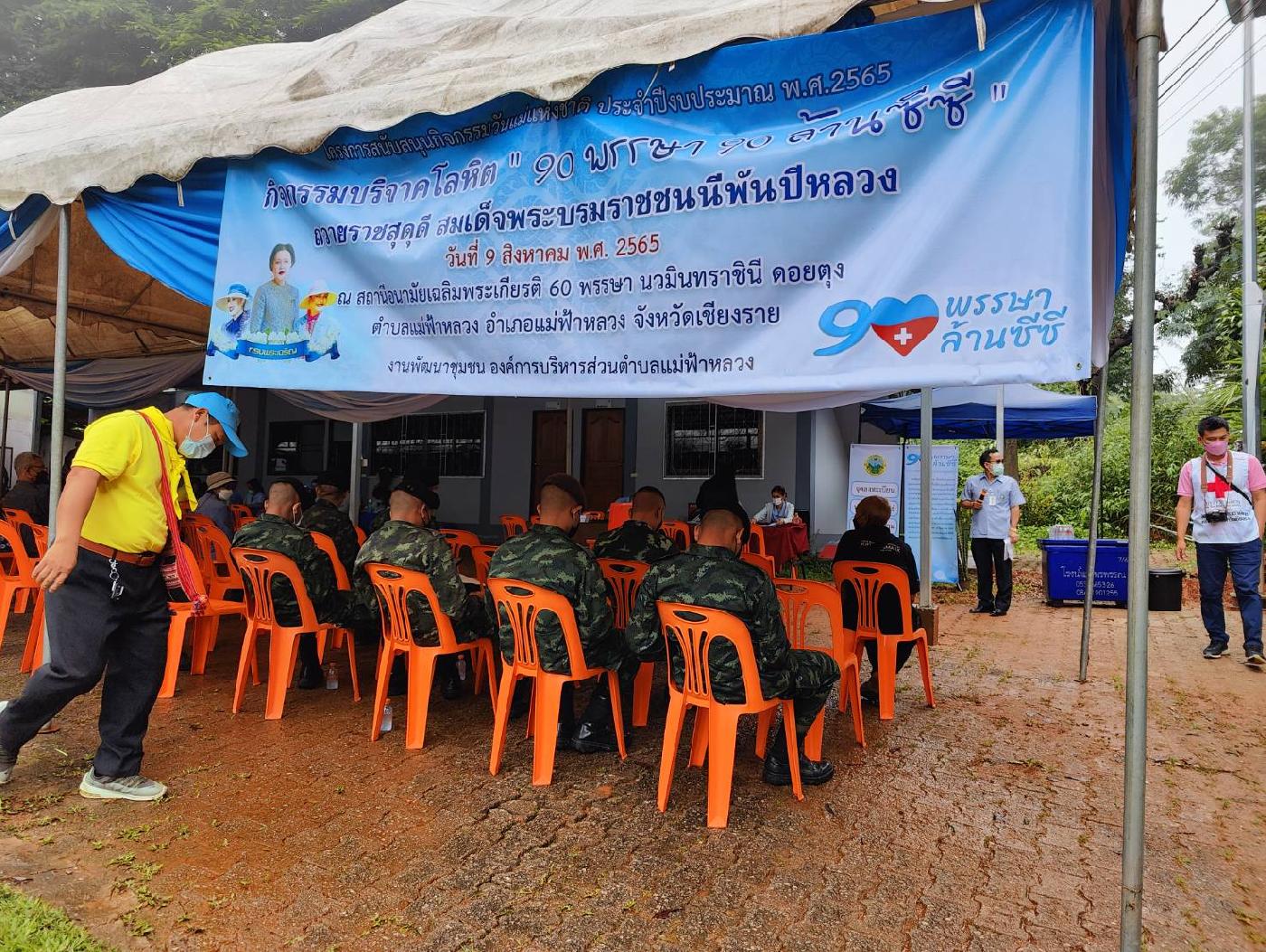 วันที่ 9 สิงหาคม 2565 งานสวัสดิการ สังคมสงเคราะห์และพัฒนาชุมชน สำนักงานปลัด องค์การบริหารส่วนตำบลแม่ฟ้าหลวง ดำเนินโครงการสนับสนุนกิจกรรมวันแม่แห่งชาติ ประจำปีงบประมาณ พ.ศ. 2565 กิจกรรมบริจาคโลหิต "90 พรรษา 90 ล้านซีซี" ถวายสดุดี สมเด็จพระบรมราชชนนีพันปีหลวง วันที่ 9 สิงหาคม พ.ศ. 2565 ณ สถานีอนามัยเฉลิมพระเกียรติ 60 พรรษา นวมิทราชินี ดอยตุง ตำบลแม่ฟ้าหลวง อำเภอแม่ฟ้าหลวง จังหวัดเชียงราย ร่วมกับหน่วยงานราชการในตำบลแม่ฟ้าหลวง พร้อมทั้งร่วมกิจกรรมมอบถุงยังชีพ และรถเข็นผู้ป่วยให้กับประชาชนในพื้นที่ตำบลแม่ฟ้าหลวง ดำเนินการโดยกิ่งกาชาดอำเภอแม่ฟ้าหลวง พนักงานส่วนตำบล ข้าราชการ เจ้าหน้าที่องค์การบริหารส่วนตำบลแม่ฟ้าหลวงร่วมสนับสนุนรถเข็นเพื่อมอบให้กับผู้ป่วยที่มีความจำเป็นต้องใช้งาน จำนวน 1 คัน