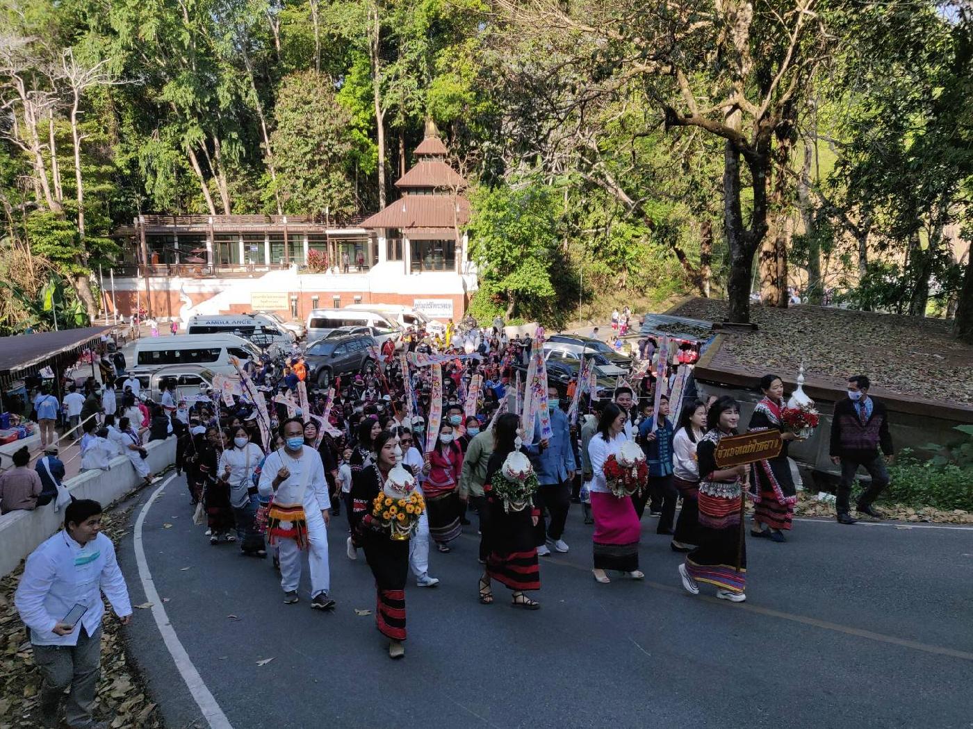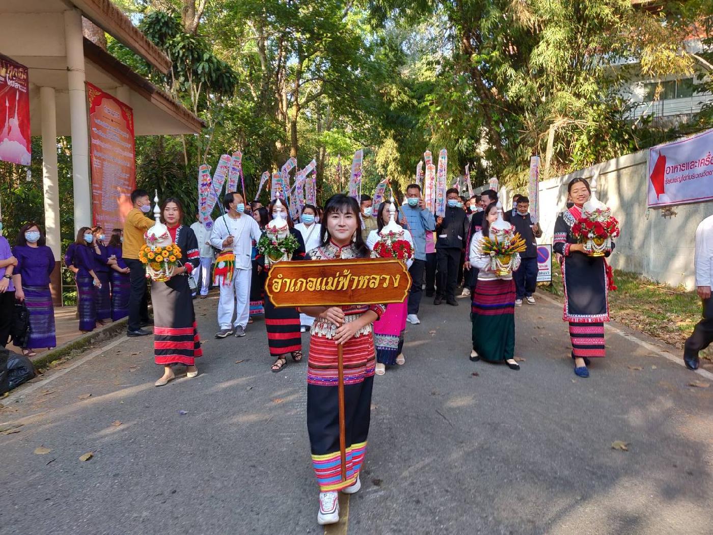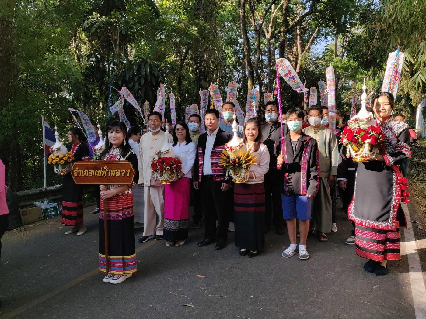 อบต.แม่ฟ้าหลวง ส่วนราชการอำเภอแม่ฟ้าหลวง กำนันผู้ใหญ่บ้านตำบลแม่ฟ้าหลวง จัดริ้วขบวนร่วมงานประเพณีนมัสการและสรงน้ำพระธาตุดอยตุง ประจำปี 2564 2003 ปีสืบมา หกเป็งล่องฟ้า ไหว้สาพระธาตุดอยตุง วันที่ 26 กุมภาพันธ์ 2564