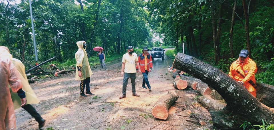 16 สิงหาคม 2564 นายเผ่าพันธ์ธิน ธรรมบัณฑิต ปลัดองค์การบริหารส่วนตำบลแม่ฟ้าหลวง พร้อมพนักงาน เจ้าหน้าที่กู้ภัย ทำการสำรวจความเสียหายบ้านเรือนประชาชน และตัดต้นไม้โค่นล้ม ขวางถนนเส้นทางสัญจรในพื้นที่ จากเหตุฝนตกหนักอย่างต่อเนื่อง
