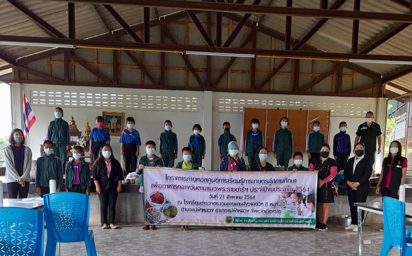 วันที่ 21 สิงหาคม 2564 งานส่งเสริมการเกษตรร่วมกับสถานศึกษาในพื้นอำเภอแม่ฟ้าหลวง ได้เข้าร่วมกิจกรรมปลูกผืชผักและกิจกรรมถนอมอาหาร ในโครงการถ่ายทอดศูนย์การเรียนรู้การเกษตรสู่สถานศึกษา เพื่ออาหารกลางวันตามแนวพระราชดำริฯ ณ โรงเรียนตำรวจตระเวรชายแดนสังวารวิทย์ 8 ตำบลแม่ฟ้าหลวง อำเภอแม่ฟ้าหลวง จังหวัดเชียงราย