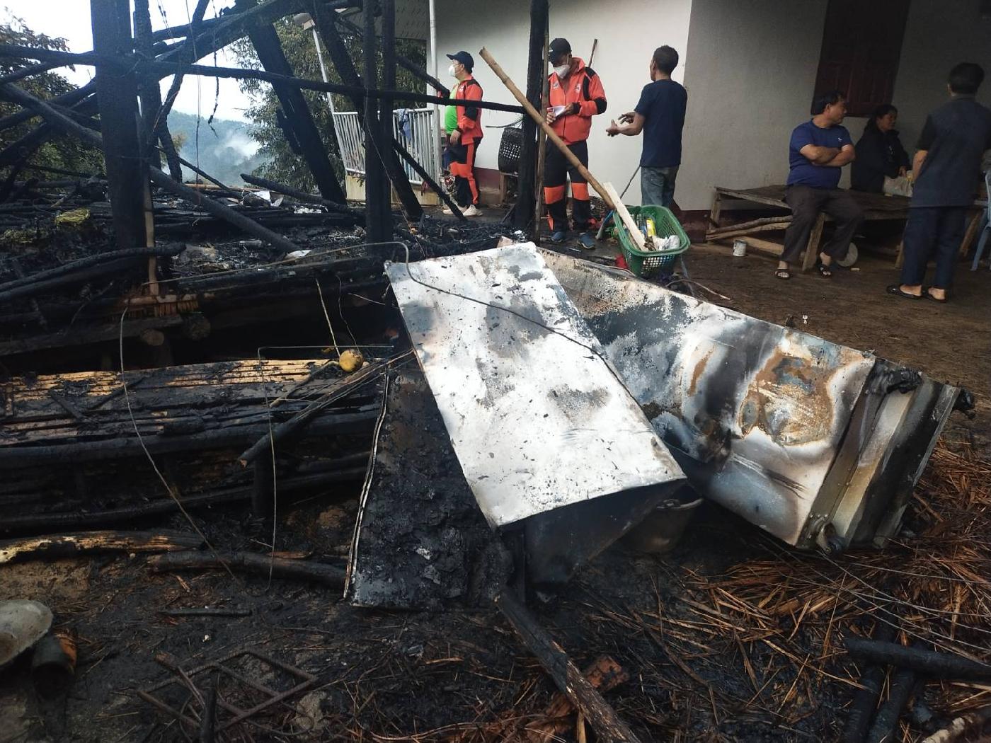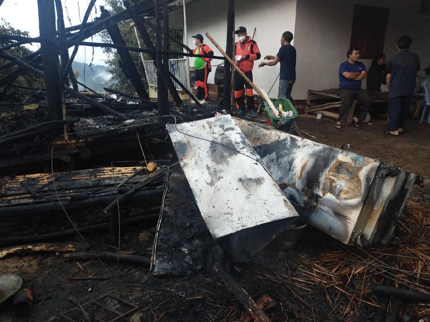 นายวิทยา วิเศษเจริญธรรม ตำแหน่งรองนายกองค์การบริหารส่วนตำบล แม่ฟ้าหลวง นายสมชาย พิมลเกษตรสิน ตำแหน่งเจ้าพนักงานป้องกันและบรรเทาสาธารณภัยชำนาญงาน และนายวรวัฒน์ จะตุเทพ ตำแหน่งจ้างเหมาแรงงานด้านป้องกันและบรรเทาสาธารณภัย ได้เข้าดำเนินการตรวจสอบข้อเท็จจริงแล้ว ในวันที่ 17 มกราคม 2565 เวลา 10.30 น. ปรากฏว่าไฟไหม้ห้องครัวทั้งหลัง ของบ้านนายจะแม ลาหูนะ บ้านเลขที่ 64 หมู่ที่ 19