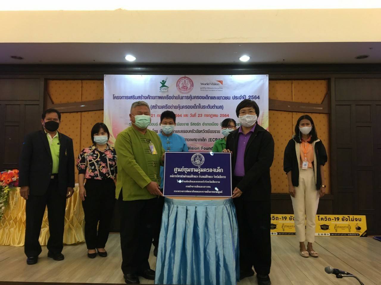 เมื่อวันที่ 21 กรกฎาคม 2564 งานพัฒนาชุมชนเข้าร่วมการอบรมโครงการเสริมสร้างศักยภาพเครือข่ายในการคุ้มครองเด็กและเยาวชนประจำปี 2564 และรับมอบป้ายศูนย์ชุมชนคุ้มครองเด็กในระดับตำบลจากรองผู้ว่าราชการจังหวัดเชียงราย นายวุฒิชัย เสาวโกมุท ณ โรงแรมไดมอนด์ ปาร์ค อินน์ อำเภอเมืองเชียงราย จังหวัดเชียงราย เพื่อนำไปดำเนินการจัดตั้งศูนย์ชุมชนคุ้มครองเด็กตำบล ให้การช่วยเหลือเด็กและเยาวชนในพื้นที่จากความรุนแรงในครอบครัวต่อไป