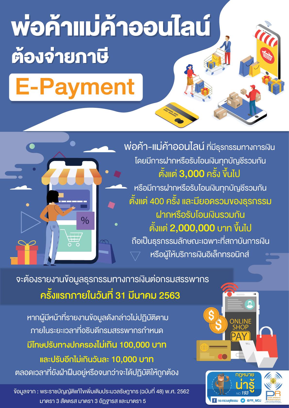 กฎหมายน่ารู้ ตอน พ่อค้าแม่ค้าออนไลน์ต้องจ่ายภาษี E-Payment