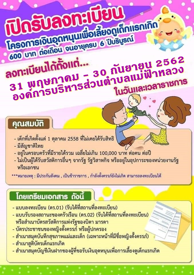 ณ องค์การบริหารส่วนตำบลแม่ฟ้าหลวง ในวันและเวลาราชการ