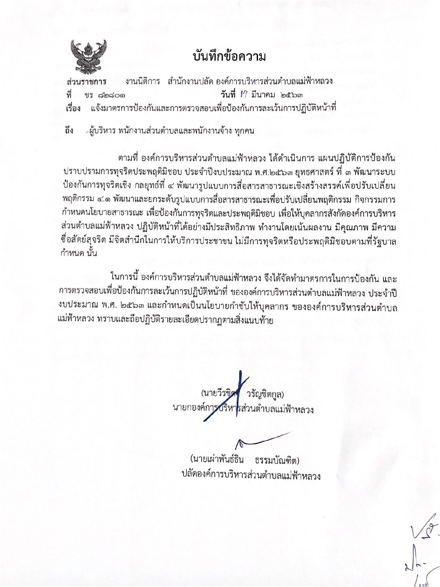 แจ้งมาตรการป้องกันและการตรวจสอบเพื่อป้องกันการละเว้นการปฏิบัติหน้าที่